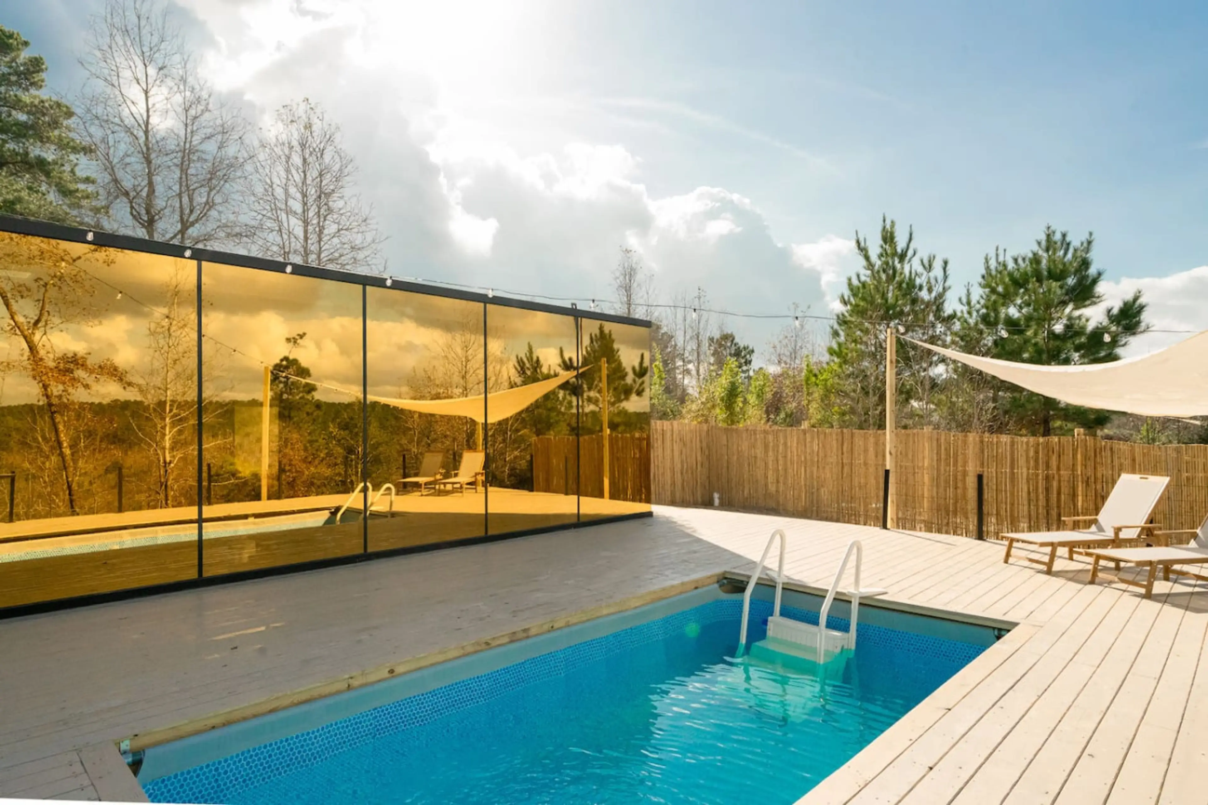 Sol: Hilltop Mirror Cabin + Pool + Sunset Views